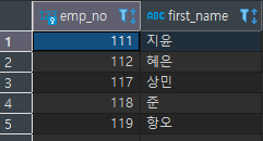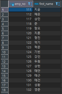 첫번째 쿼리문의 결과는 모든 값이 다 나왔다.