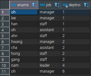 - AND 조건 : 서브쿼리 안의 결과값이 1개 이상이 나오면 안된다.
