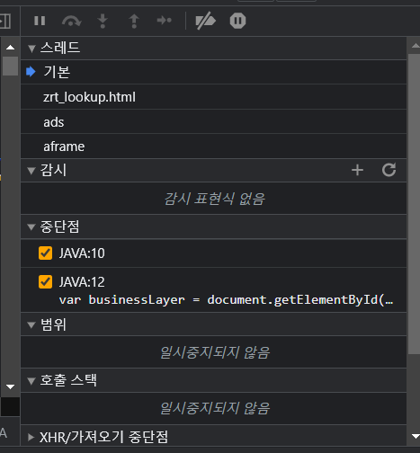 ์ํ๋ ์ง์ ์ ์ค๋จ์ ์ ์ง์ ํด๋๋ฉด ํด๋น ๋ถ๋ถ์ ์ฝ๋๊ฐ ์คํ๋ ๋ ์ค์ง๋๊ณ ,